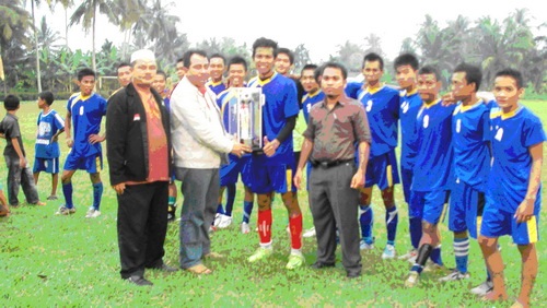 Direktur AMIK ICGI, Syamsuddin Lubis,MM Memberikan Piala Bergilir INTeL Com Cup Kepada SMA Swasta YAPIM Simp.Kawat-Asahan.